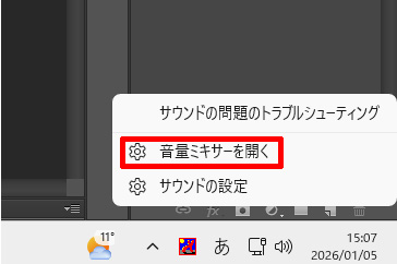 画面の出し方は下記のように右下スピーカーアイコンを右クリック
