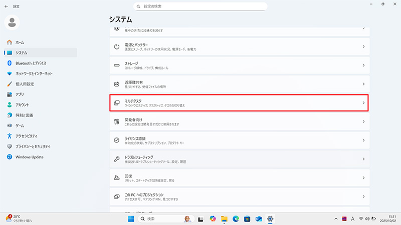 左メニューの「システム」→「マルチタスク」