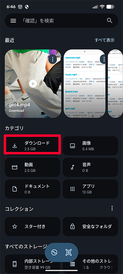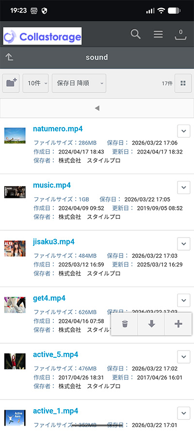 スマホ側からコラストレージにアクセスし、その共有フォルダ(スマホデータ)にアクセスします。